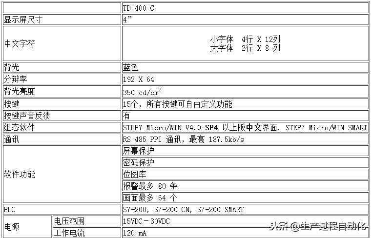 TD400C是S7-200,S7-200SMART专用的文本显示器,只能配合S7-200CN和SIMATICS7-200以及S7-200SMART产品使用。TD400C不能用于其他任何控制器。