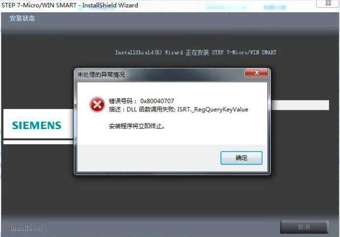 安装常见问题S7-200SMART安装中止或者报告DLL函数调用失败如图2所示: