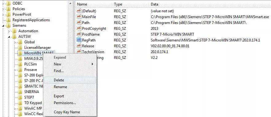 4.删除查找到的和STEP7-Micro/WINSMART相关的注册表条目