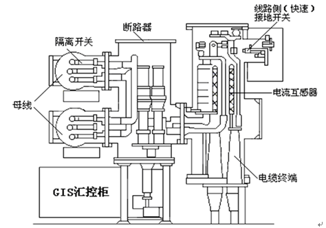 奉贤换流站500kV交流侧主接线采用3/2断路器接线方式,其交流场内采用的是户内GIS方案。GIS即为SF6封闭式组合电器,它将变电所中,除了变压器的一次设备包括油断路器、电流互感器、电压互感器、母线、进出线套管接器接地开关、电缆终端和隔离开关等,经过合理的设计组合为一个有机的整体,并封装在金属封闭外壳内,与出线套管、电缆连接装置、汇控柜等共同组成,充以一定压力的SF6气体作为灭弧和绝缘介质的高压成套配电装置。GIS结构参见图3。