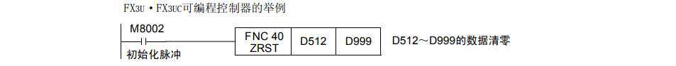 •将停电保持专用的数据寄存器作为一般用使用时,请使用RST,或是ZRST指令在程序的开头步中设置如下所示的复位梯形图。