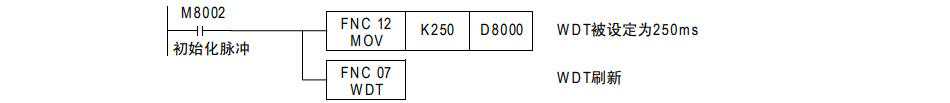 •例如,系统ROM对D8000中的WDT时间进行初始设定,但如果要更改,使用传送指令MOV(FNC12)可以向D8000中写入目的时间。