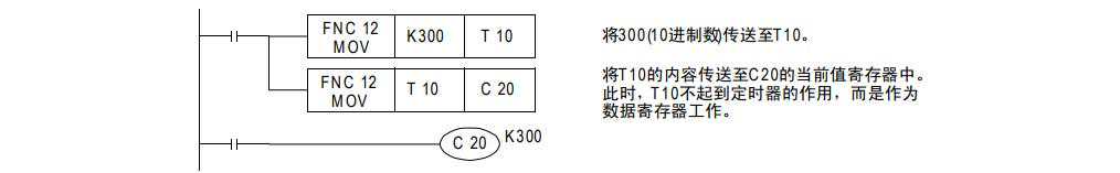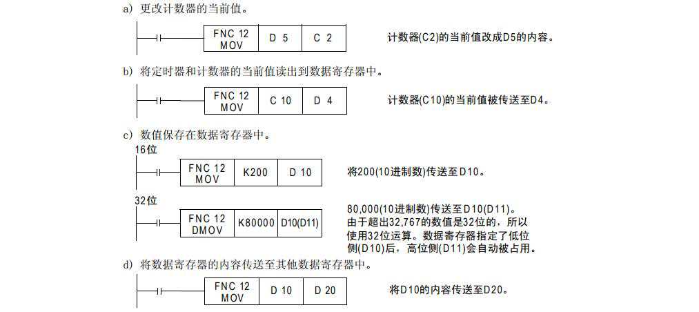 (2)应用指令中的数据寄存器MOV(FNC12)指令的动作实例