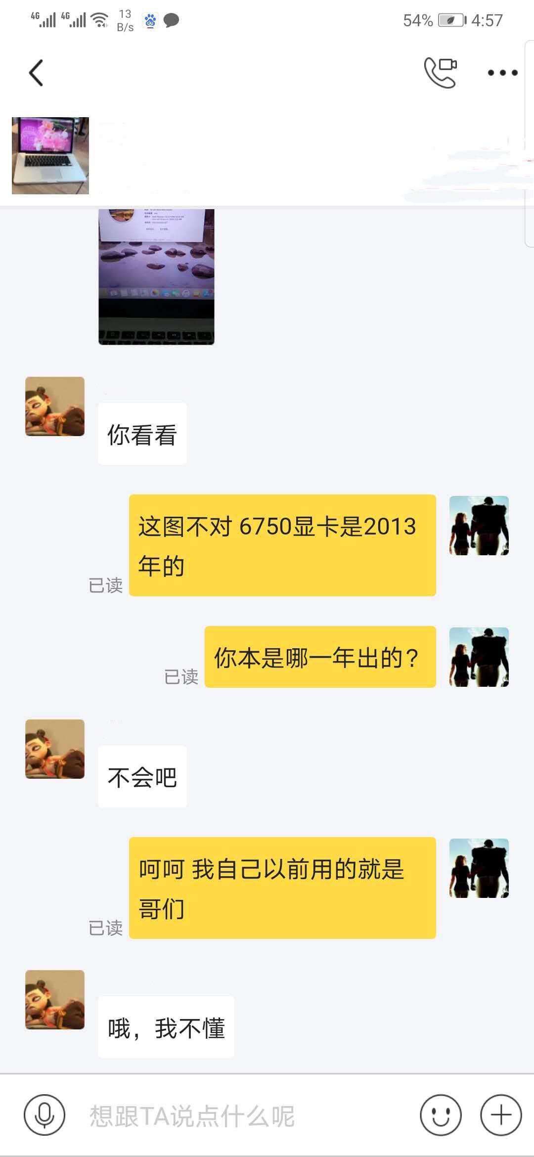 卖家咸鱼宝贝描述的内容有板有眼,可是聊天记录里关于本机的概览内容却漏了马脚,上面显示的是MacBookPro(15-inch,2017),图形卡AMDRadeonHD6750M1024MB。可我记得这个配置应该是MacBookPro(15英寸,2011年末机型),2.2GHzi7中央处理器,AMDRadeonHD6750M图形处理器,512MBGDDR5显存。