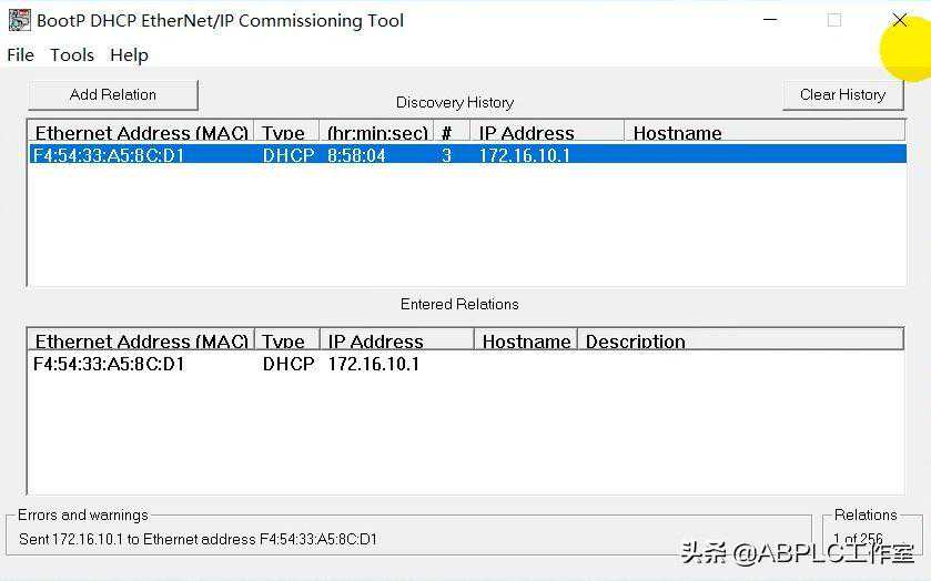 4.等待上面的窗口出现分配的IP地址后,就可关掉BootP-DHCPTool软件.