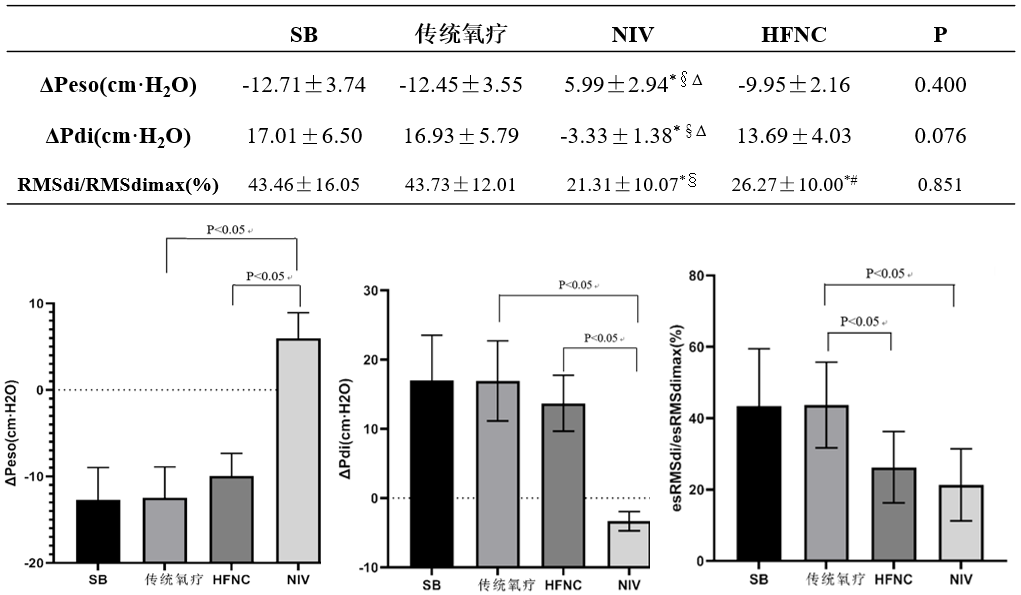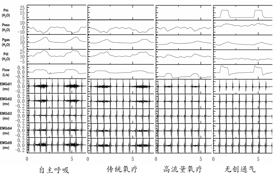 图:SB:自主呼吸;HFNC:高流量氧疗;NIV:无创通气;RMSdi/RMSdimax:校正的膈肌肌电均方根