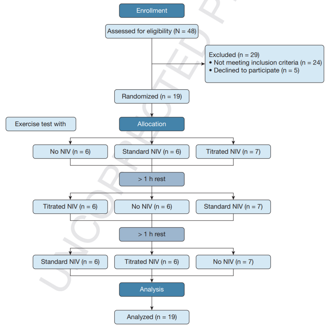 最近发表在《Chest》上的研究报道[22],研究者用双管路的NIV辅助慢阻肺病患者运动,结果显示,NIV可以改善动态过度充气和运动时间。