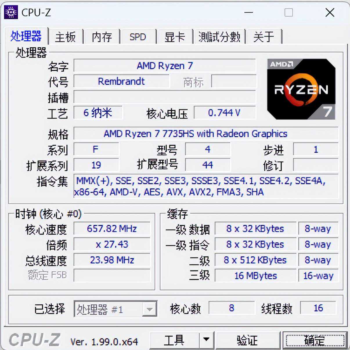 性能配置方面,我手中的这台机械师曙光16ProCPU选用Ryzen77735H,这枚8核心16线程处理器采用最新Zen3+架构,3.2GHz主频,最高频率可达4.75GHz,单核性能强劲,自带核显为Radeon600MSeries,图形处理速度相较上代有大幅提升。