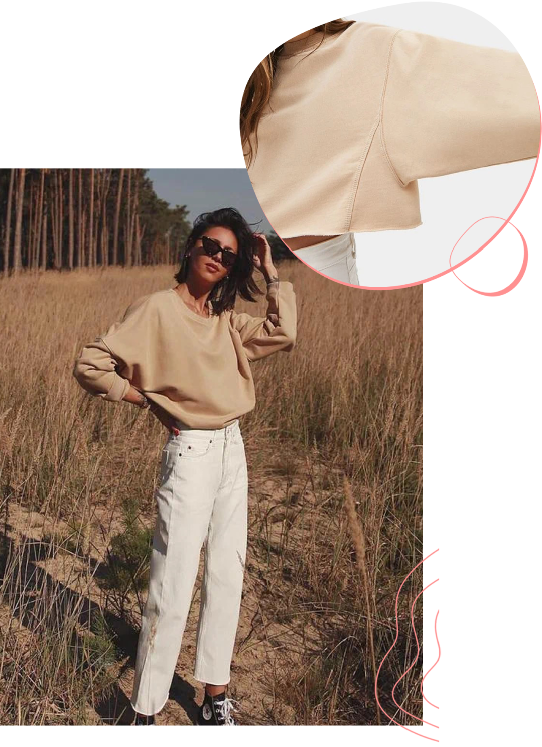 尤其是小个子的女生,日常担心卫衣显肿显矮的话,CROPTOP卫衣绝对是闭眼都错不了的选择,轻松穿出2米大长腿。