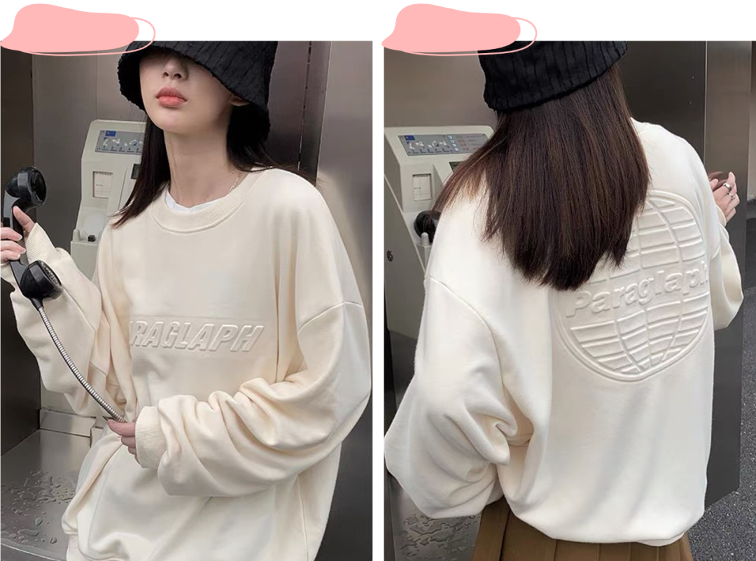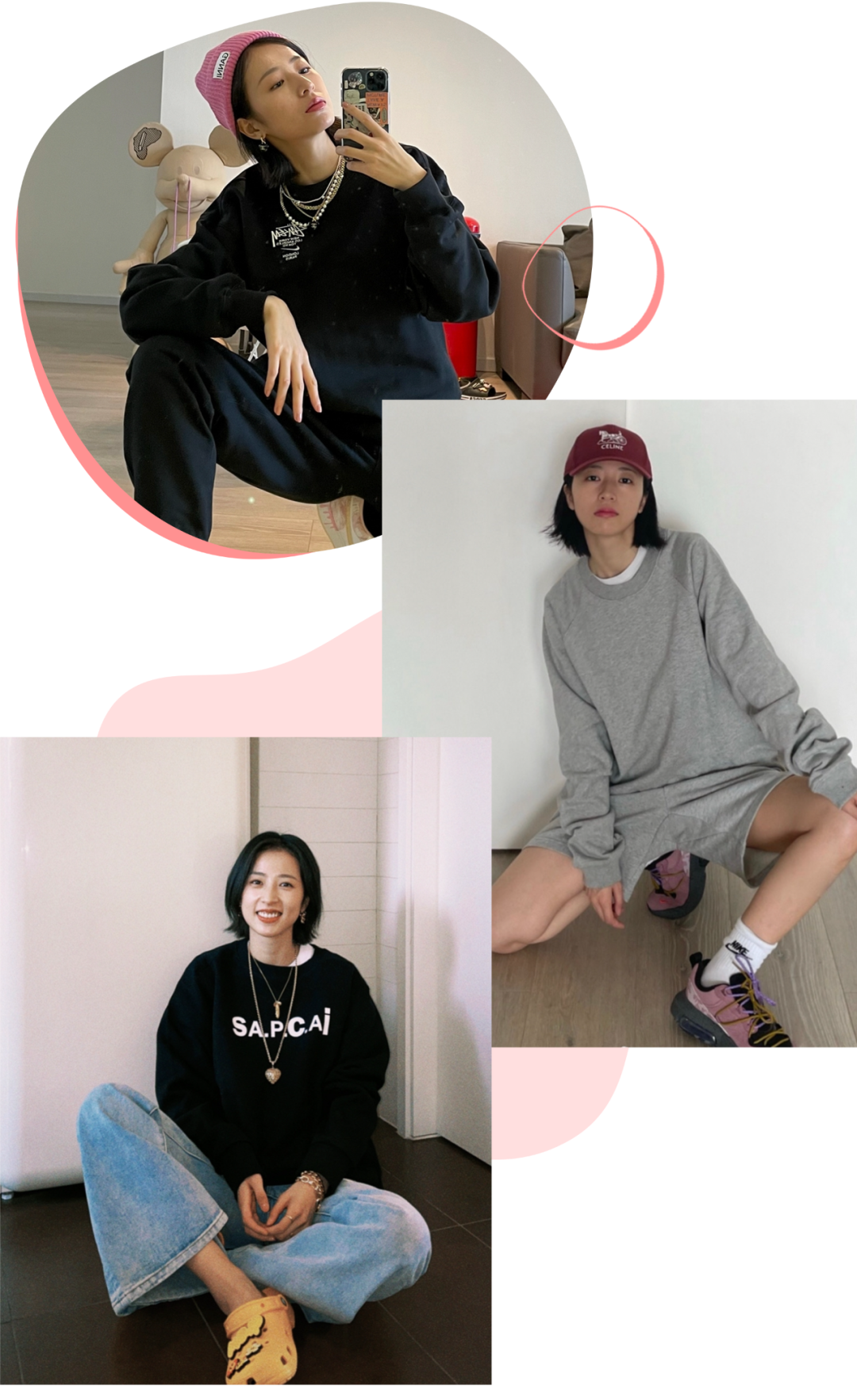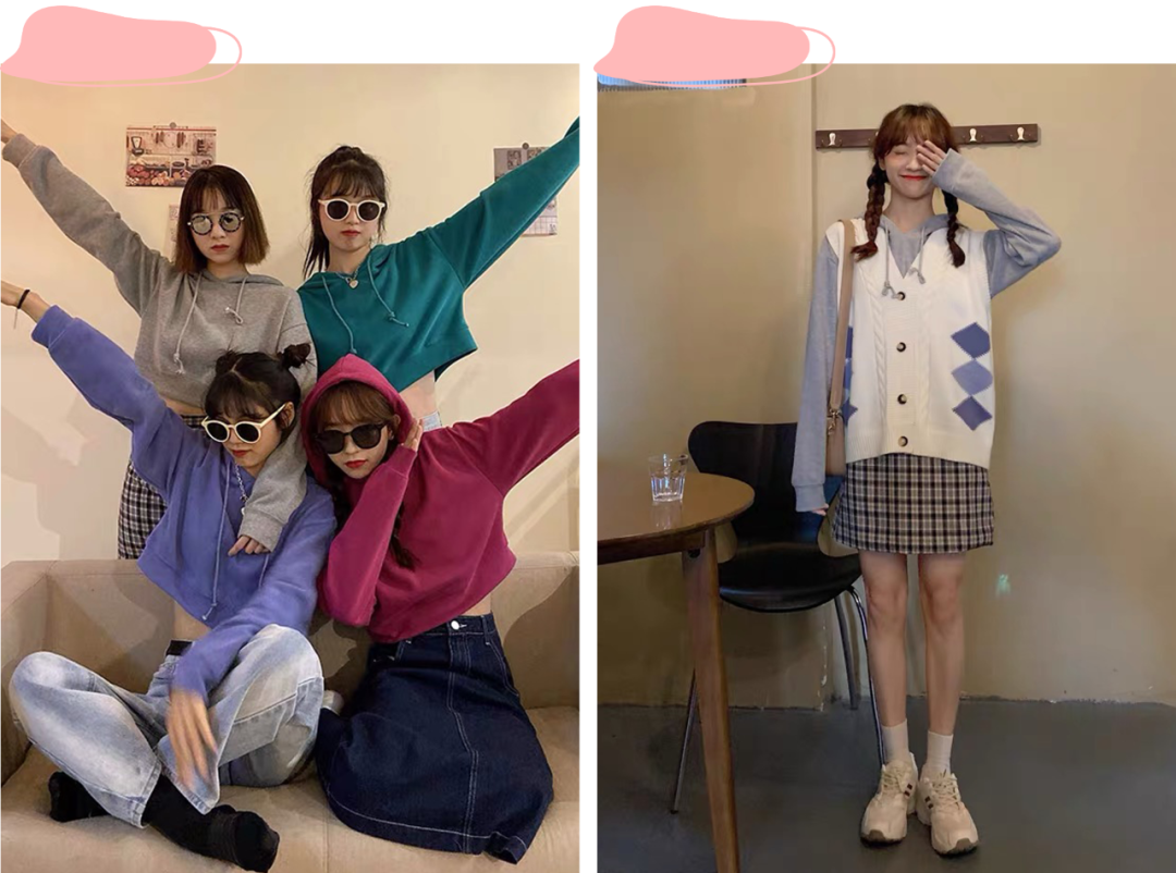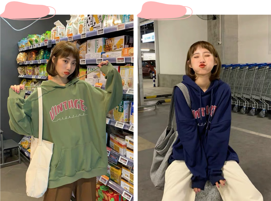 除了CROPTOP卫衣之外,更建议大家在选择卫衣尺码的时候多留一些空间,穿着效果不宜太贴身,不然很容易显土暴露身材缺陷。