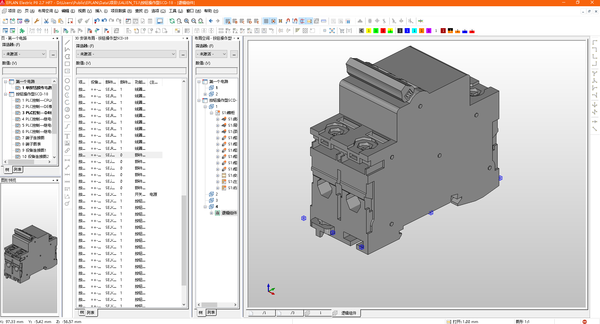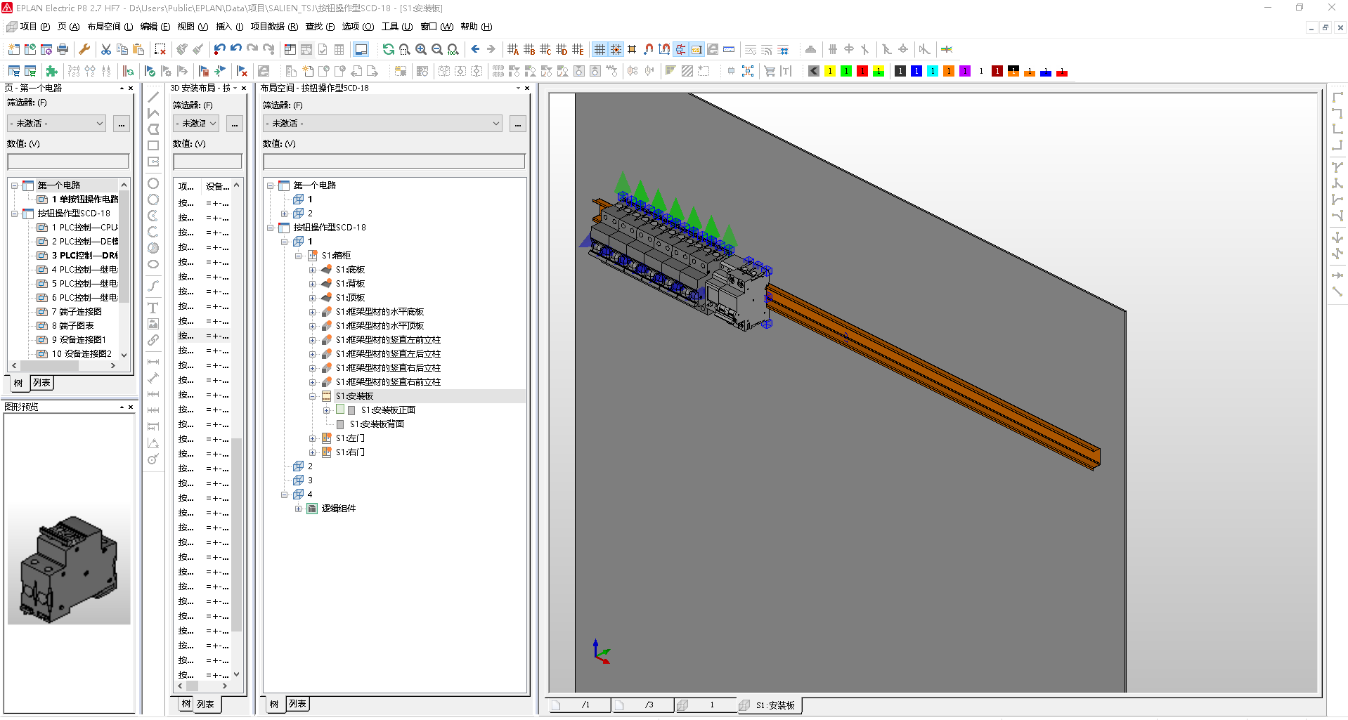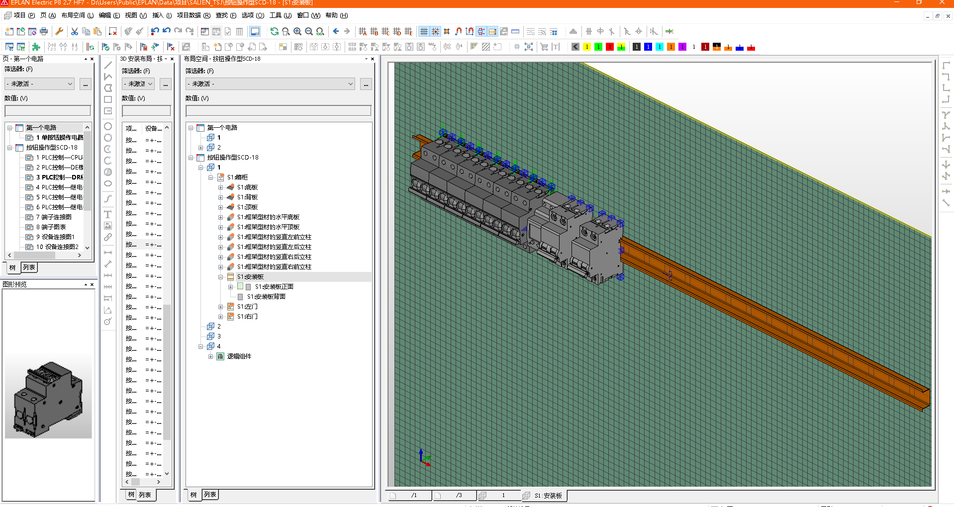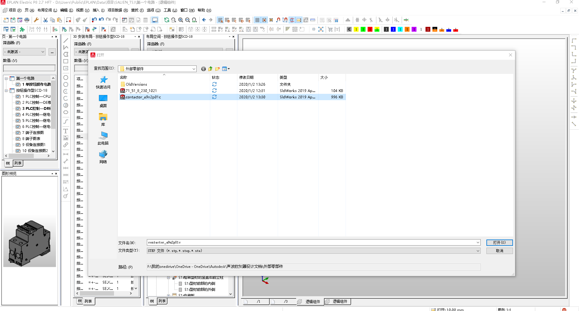 5、切换到Eplan软件,从布局空间菜单下选择导入(3D图形)文件,将已保存的三维部件导入Eplan中。