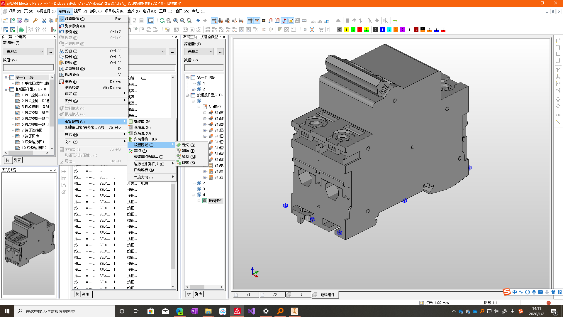 6、从编辑菜单下选择设备逻辑依次将安装区域,安装面,安装基准点、安装点一一设置。