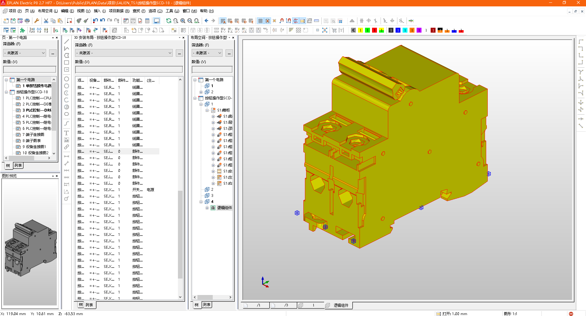 对于一些常见的标准电气部件,基本上可以通过从Eplan部件库下载得到,那么对于一些不常使用的电气部件又该怎么办呢。前两天有个朋友问我,我当时没用过3D布局,对3D布局了解不多,所以建议他用三维软件画图,画完图后再导入到Eplan中进行使用,那个朋友还跟我说导入后安装不方便,需要多次调整方向,其实他漏掉了一步,把其它三维部件导入到Eplan中后还需要对安装面、安装点进行设置,设置后再进行插入就会方便了很多,今天把整个步骤用图片的型式演示一下,有用到的朋友可以自己试试!