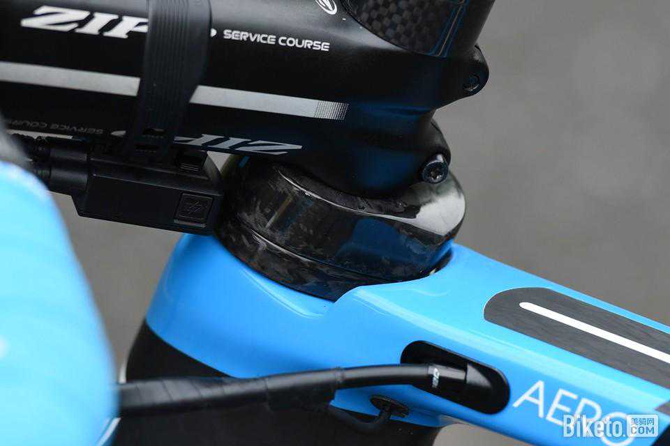 摆正车头后,大理石纹碳纤维垫块与头管、上管完美融合,最大化保持了车头的整合程度,对比普通垫圈,整合度的提高,可降低肉眼所无法看见的头管迎面风扰流,还能为肉眼可见的“颜值”加分,一举多得。