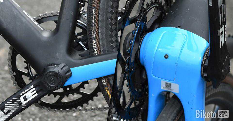 非驱动侧的视角表明其隐藏着“功率的芯”,老生常谈,自行车功率计的出现,引领自行车运动进行了一次重大的革新,训练从未达到如此高效,让传统纯心率的训练看起来就像是个呆子瞎跑;比赛时,根据功率瓦数,实时调整输出,也是最直接控制输出的手段;每位车手的头上都像是被挂上了各自的“血条”、“气槽”,先进科技的引入,大大改变了当前公路自行车的比赛格局。