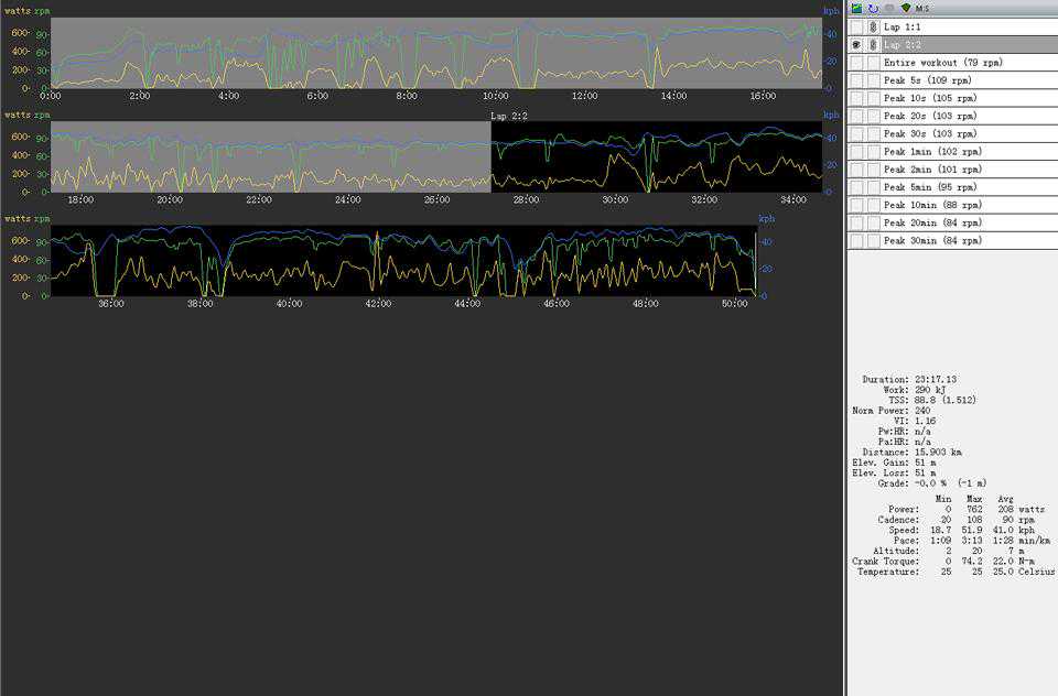 在T1300体验的这段时间,RotorINpower3D30表现出不俗的稳定性与准确性,全程的数据曲线也没有“极其怪异”的跳动,局限于其非驱动侧盘腿轴心单边测量,与其他单左侧盘腿式结构的功率计一样,RotorINpower3D30在平路、爬坡冲刺时所记录的最大瓦数稍有偏低。