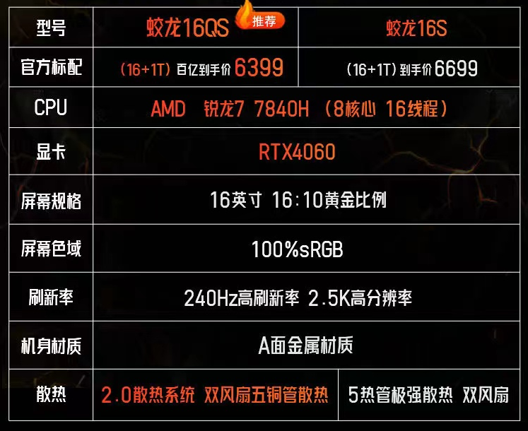 同样是首发价,两者差100元,简配了三大项,蛟龙16QS实际上是一款“隐性涨价”的产品。