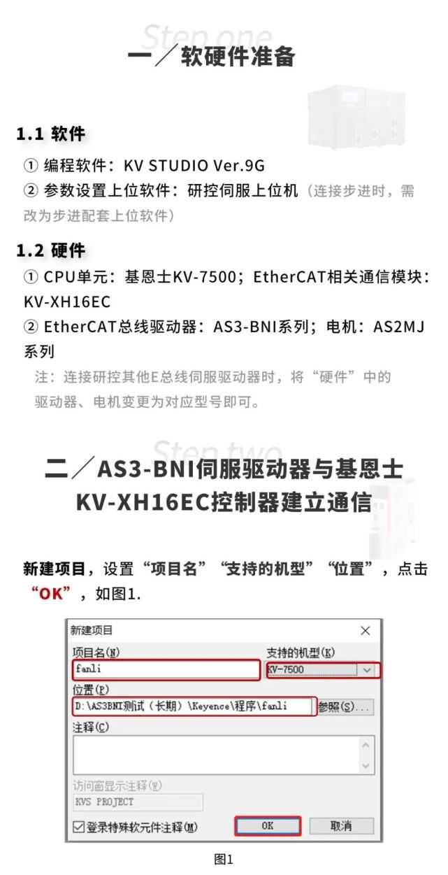 本期,我们将以伺服驱动器AS3-BNI为例,介绍研控E总线驱动器与基恩士控制主站KV-7500的连接步骤。