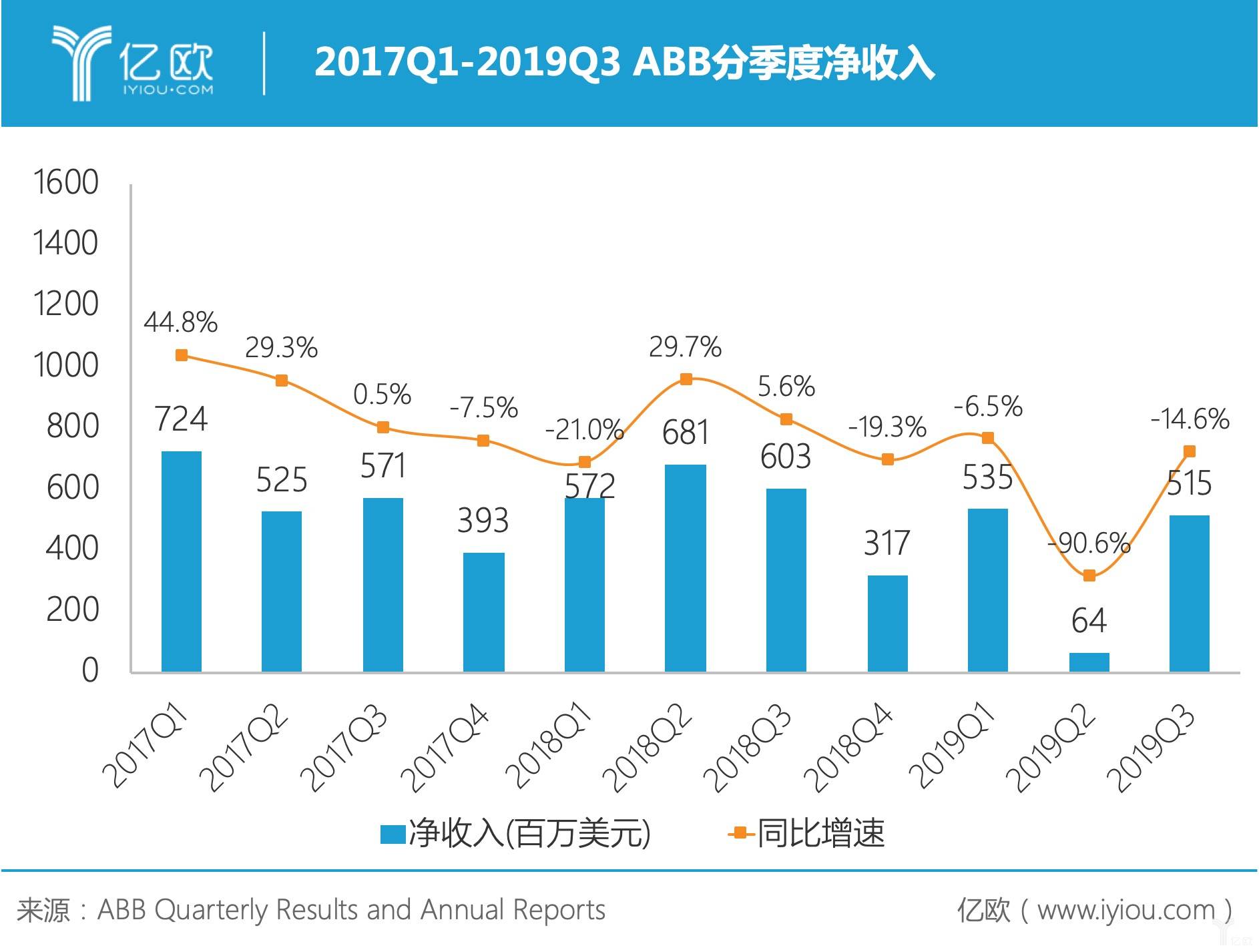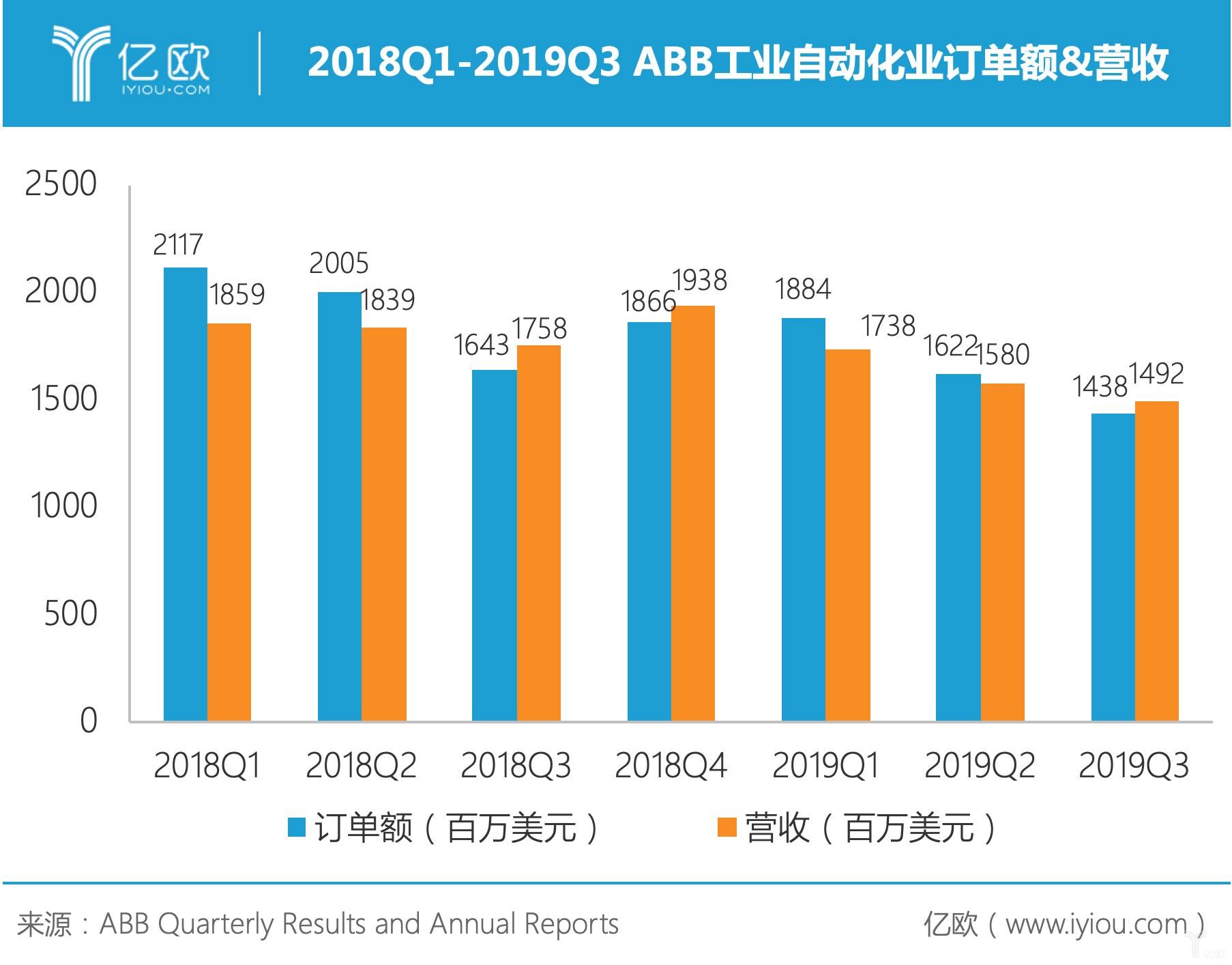 2018Q1-2019Q3ABB工业自动化业订单额营收