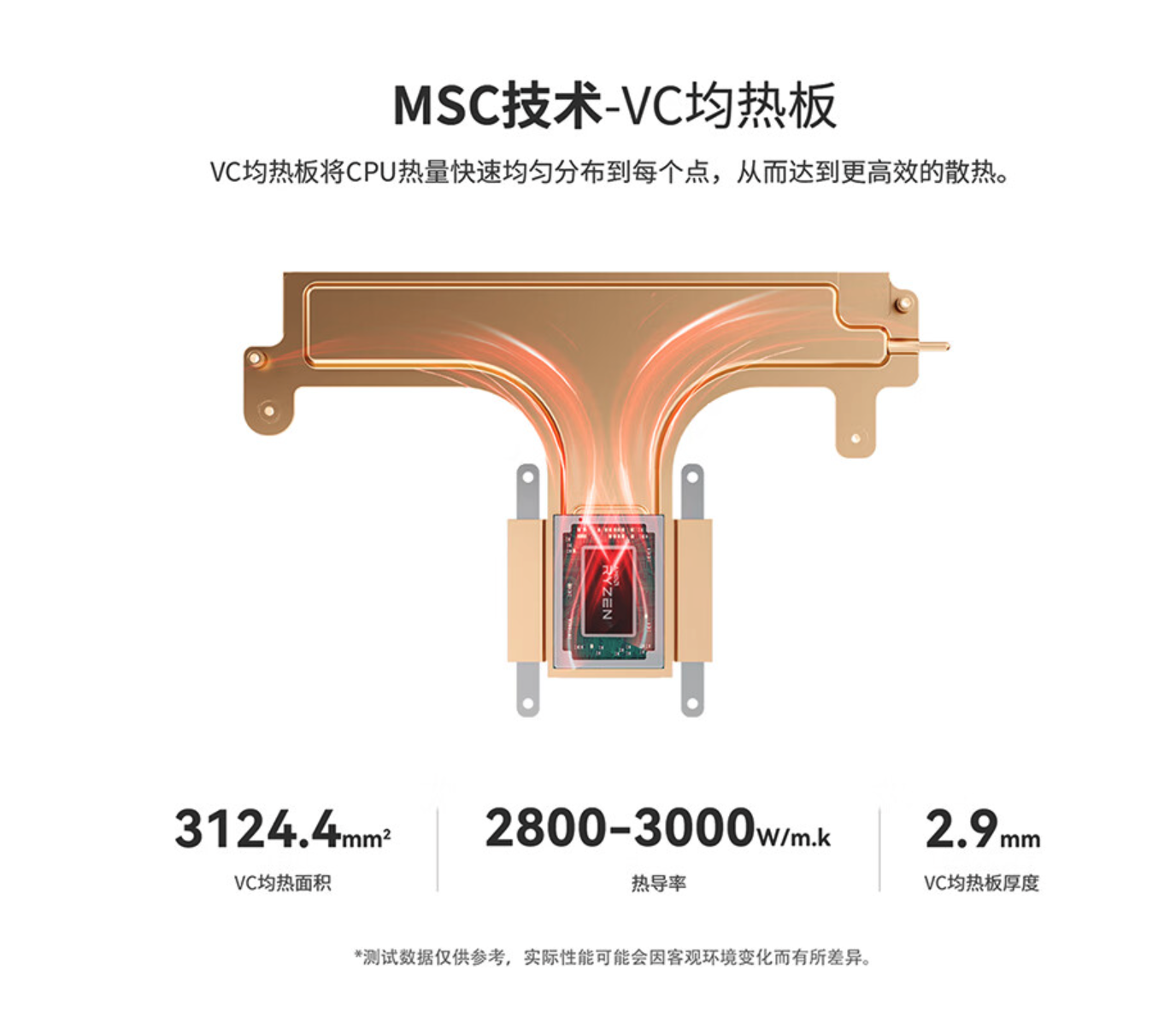 散热部分也升级了VC均热板,这应该是这个尺寸迷你主机中,第一家引入VC均热板设计的。对于低功耗静音,高功耗时满血释放应该有一定的帮助,但具体效果如何还是等待实测看看了。
