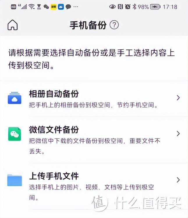 除了我们上面提到的手机相册的备份,还能在APP中实现手机文件的自主备份(上传):