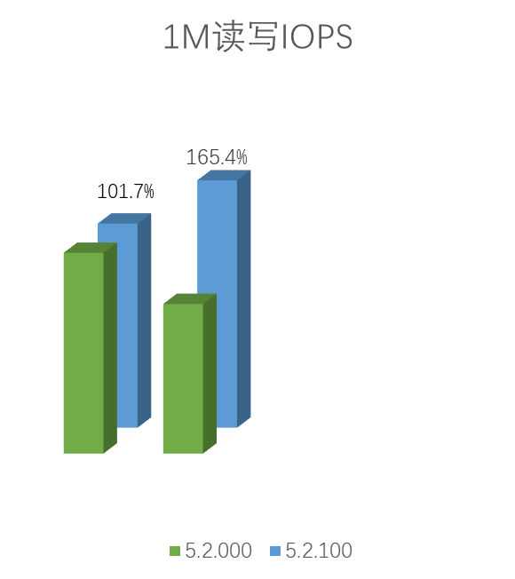 同样环境,5.2.100版本4K读写性能和1M读性能都比之前版本有较大提升,4k读相较原来可达175%,4k写则高达173.8%!