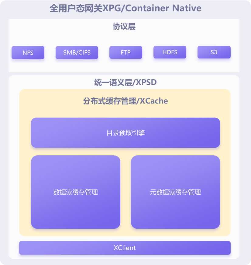 XClientCache是XGFS在网关或客户端中提供数据缓存能力的模块,简称XCache同时提供文件数据的读缓存能力和元数据的读缓存能力。