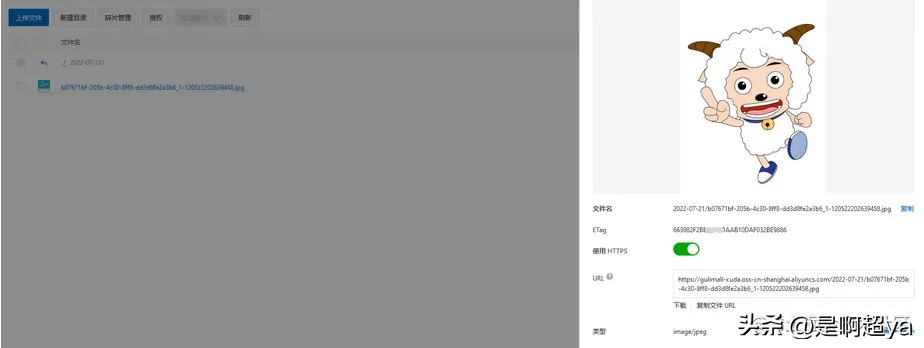 ;;;;;;;;;;;;;;;/***@author:程序员徐大大*@description:TODO*@date:2022-07-2121:35*/@RestControllerpublicclassOssController{@ResourceprivateOSSClientossClient;@Value("${}")privateStringpoint;@Value("${}")privateStringaccessId;@RequestMapping("/oss/policy")publicRpolicy(){//阿里云账号AccessKey拥有所有API的访问权限,风险很高。强烈建议您创建并使用RAM用户进行API访问或日常运维,请登录RAM控制台创建RAM用户。//填写Bucket名称,例如examplebucket。Stringbucket="gulimall-xuda";//填写Host地址,格式为。Stringhost="https://"+bucket+"."+point;//设置上传回调URL,即回调服务器地址,用于处理应用服务器与OSS之间的通信。OSS会在文件上传完成后,把文件上传信息通过此回调URL发送给应用服务器。//StringcallbackUrl="";//设置上传到OSS文件的前缀,可置空此项。置空后,文件将上传至Bucket的根目录下。//将日期作为上传的文件夹目录Stringformat=newSimpleDateFormat("yyyy-MM-dd").format(newDate());Stringdir=format+"/";MapString,StringrespMap=null;try{longexpireTime=30;longexpireTime=()+expireTime*1000;Dateexpiration=newDate(expireTime);PolicyConditionspolicyConds=newPolicyConditions();(_CONTENT_LENGTH_RANGE,0,1048576000);(,_KEY,dir);StringpostPolicy=(expiration,policyConds);byte[]binaryData=("utf-8");StringencodedPolicy=(binaryData);StringpostSignature=(postPolicy);respMap=newLinkedHashMapString,String();("accessid",accessId);("policy",encodedPolicy);("signature",postSignature);("dir",dir);("host",host);("expire",(expireTime/1000));//("expire",formatISO8601Date(expiration));}catch(Exceptione){//(());(());}().put("data",respMap);//创建返回JSON数据封装}}JSON返回代码