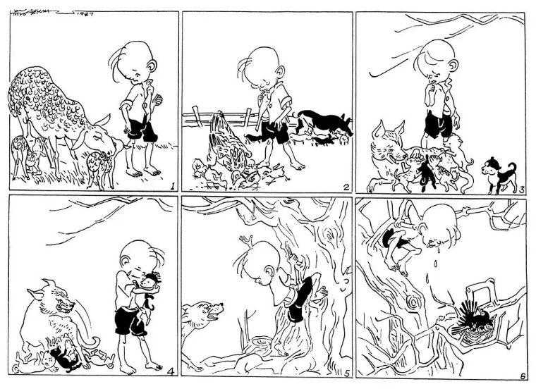 上下左右自由延伸的画面打乱了常规的阅读顺序(从上至下,从左至右),于是叙事也就背离了传统的线性叙事。这种漫画形式大于意义或者说意义就存在于形式中。