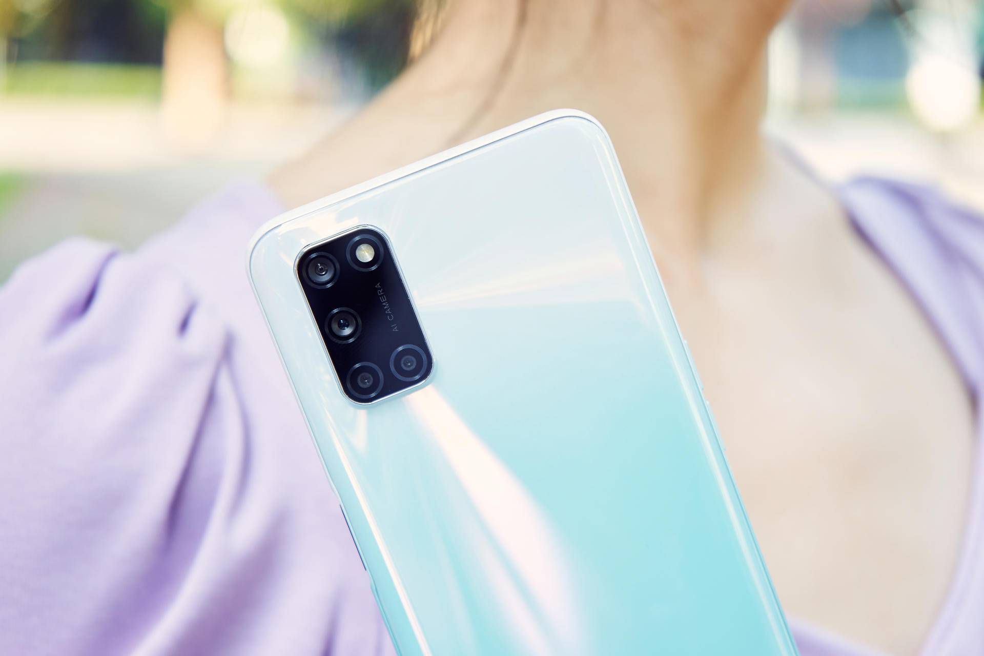 OPPOA52总共有黑色和星耀白两种配色,我手上的这款是星耀白配色的。第一眼看到它时,就有一种非常简洁时尚的感觉。机身背面散发着玉石一样的质感,同时背面散发出一种光线纹理,围绕着相机模组在不同光线下有不一样的色彩表现,看着非常舒服,颜值感爆棚。