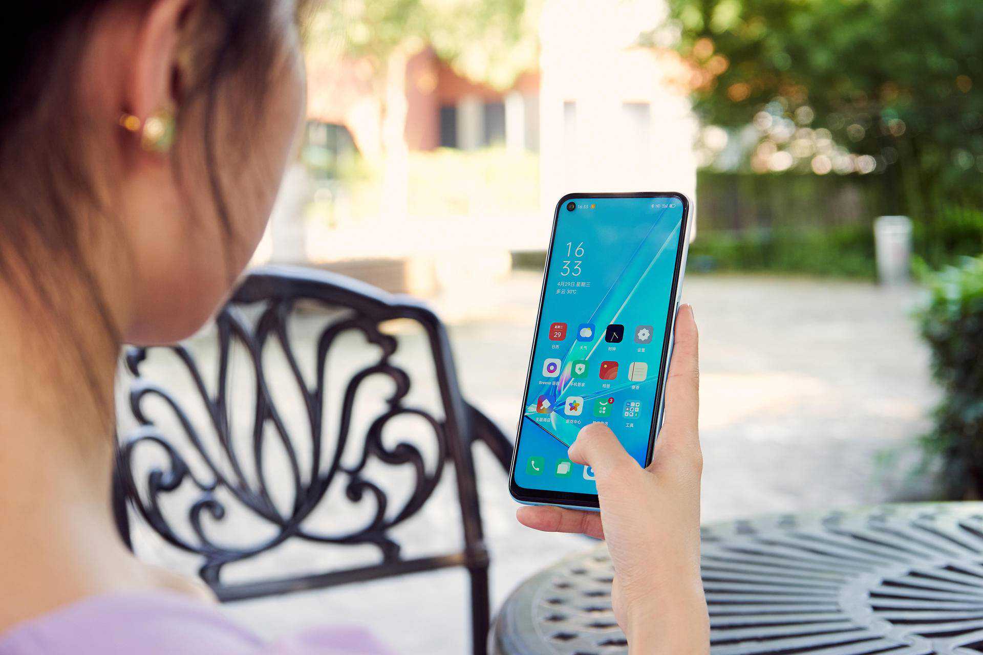点亮屏幕,我第一时间就是能感受到A52配备的6.5英寸超清灵点全民屏带来的视觉享受,前置挖孔的设计很好的让屏占比提高,灵点感十足。手机的大小刚刚好,一只手就能轻松掌握,非常适合我这种手小的女生。更重要的是,手机屏幕通过了德国莱茵护眼认证,长期使用手机不伤眼,周末熬夜追剧的时候就别提多爽了。