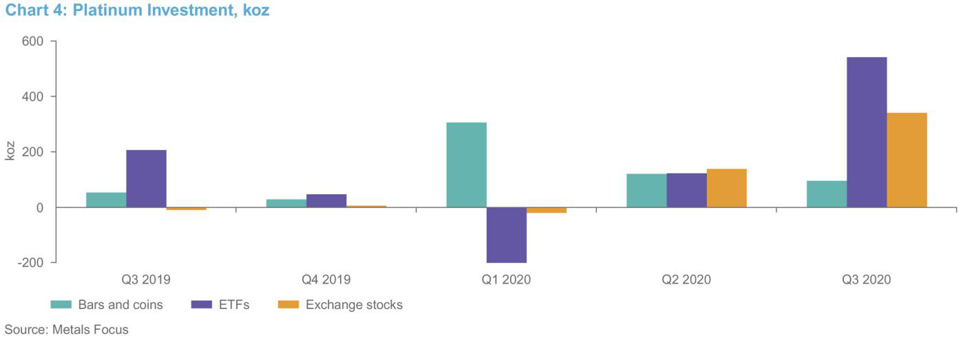 为了应对2020年上半年的供应中断和物流限制的风险,铂金生产商释放了精炼库存来补充销售。第三季度,随着物流挑战的缓解以及生产正常化,行业周转库存得以重建,第三季度的下降趋势有所逆转。预计在最后一个季度将有进一步的库存重建,但加工基础设施的意外中断可能导致生产商再次动用库存来补充销售。