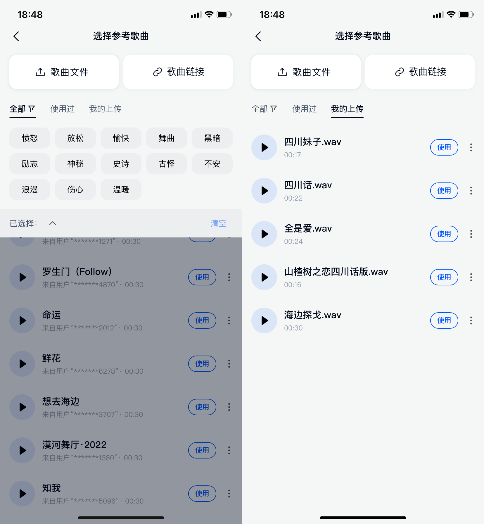 以用户生成的这两首四川rap和粤语情歌为例,不仅展示了方言歌曲的创作可能性,也体现了「天工SkyMusic」在中文领域的绝对优势。四川rap的热情和节奏感,粤语情歌的婉约和深情,都通「天工SkyMusic」得到了完美的复刻!