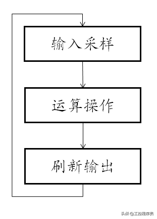 PLC的工作过程一般分为三个阶段:输入采样、用户程序运算和输出刷新三个阶段。PLC完成上述三个阶段的时间称作一个扫描周期。在整个运行期间,PLC的CPU以一定的扫描速度重复执行上述三个阶段。