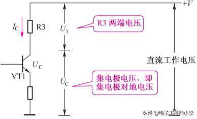 当直流工作电压+V和R3确定后,集电极电压只与集电极电流IC的大小有关,而集电极电流受基极电流控制,所以最终三极管的集电极电压由基极电流决定。
