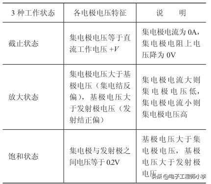 表1-8NPN型三极管3种工作状态下各电极电压特征