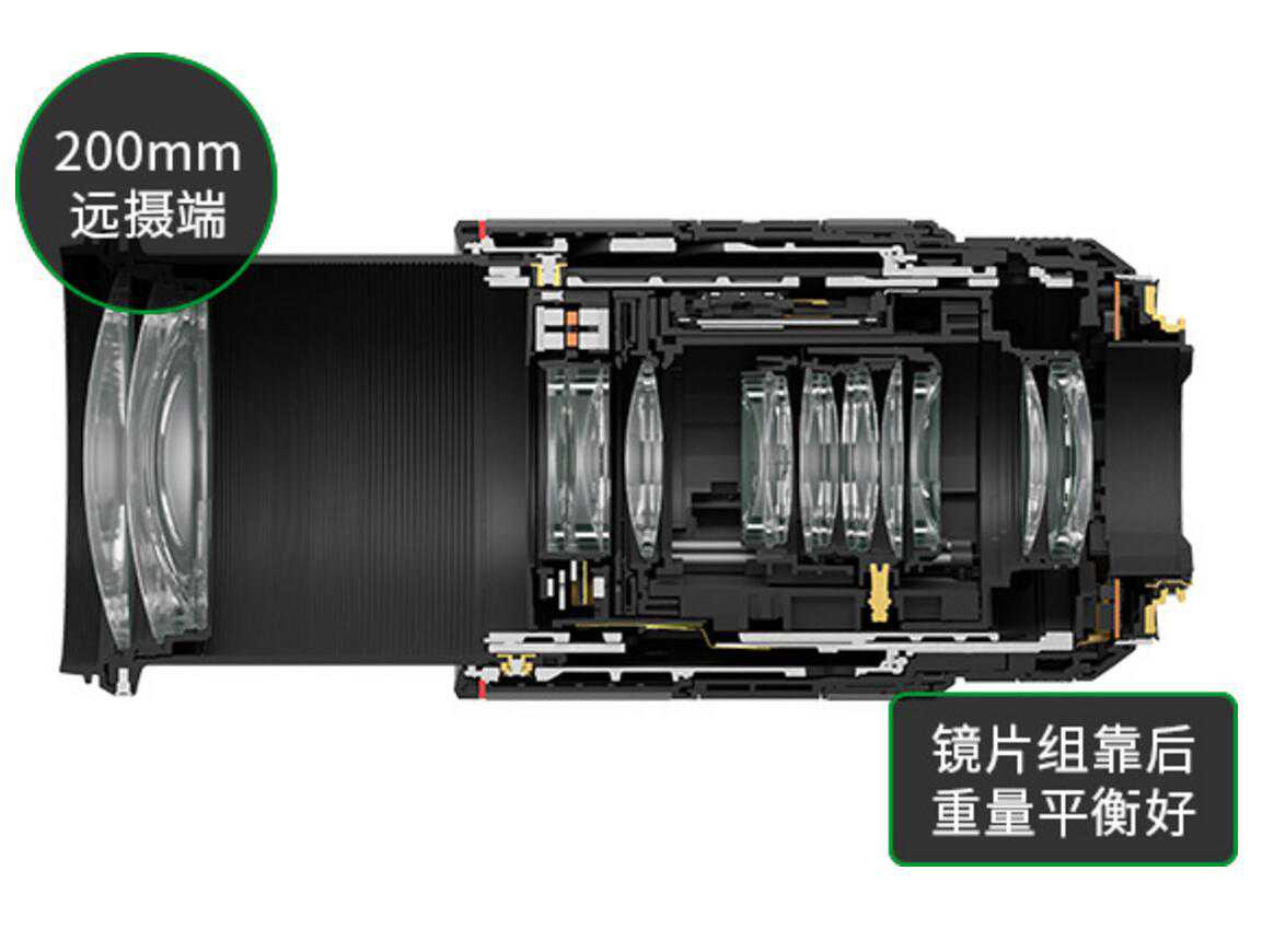 虽然是外变焦设计但是长焦端伸长的也没有特别多,而且伸出来的部分其实只有两组镜片,不会有太大的力矩对握持造成负担。