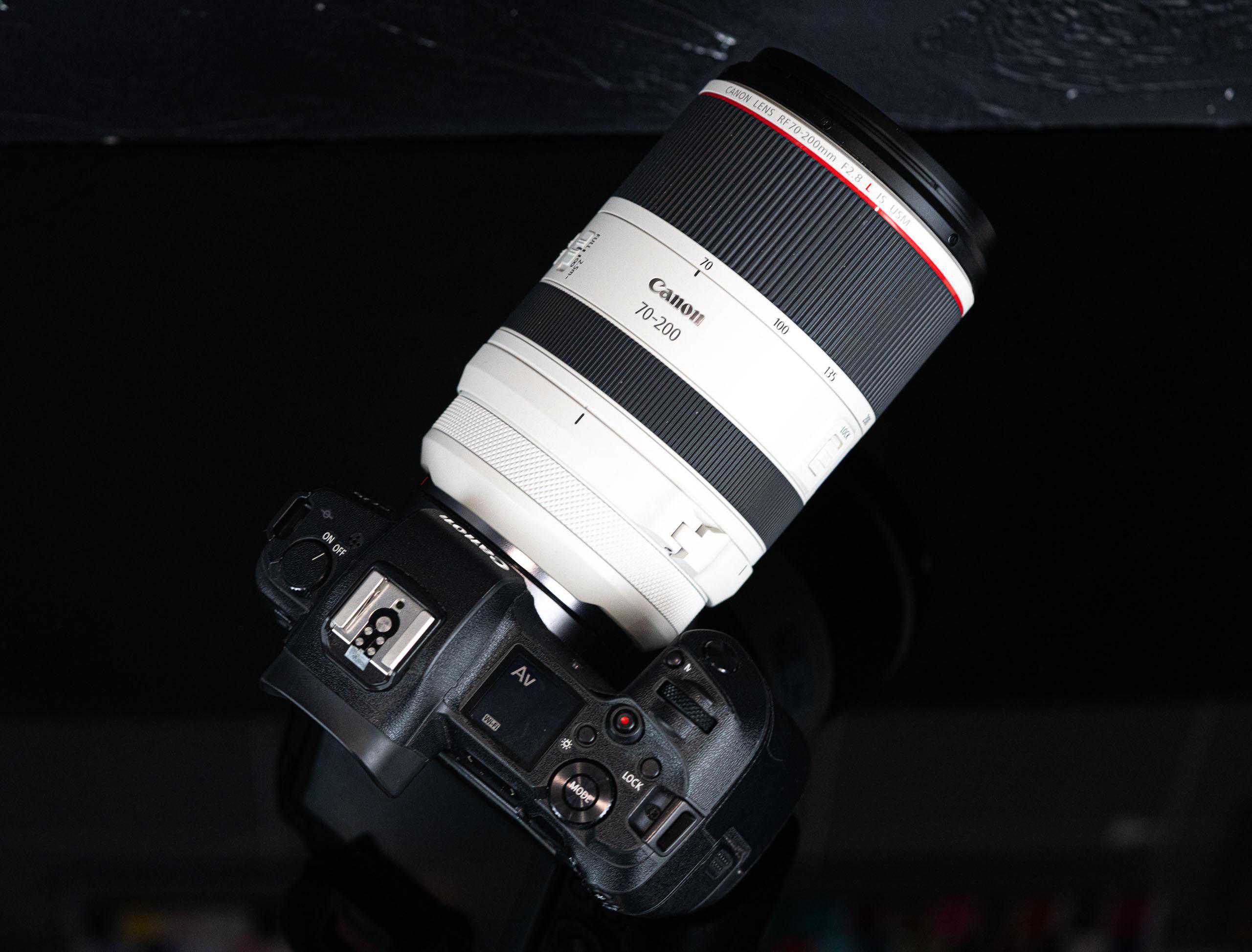 装机效果如下,作为体积最小的70-200/2.8镜头,装在EOSR微单机身上协调程度还是挺不错的。
