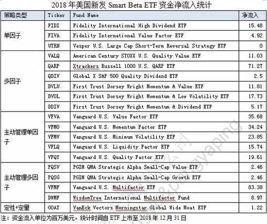 从上述因子类ETF的资金净流入情况来看,Vanguard采用主动管理模式的单因子和复合因子策略普遍受市场更加认可,其次为DB管理的基于质量和价值的双因子策略ETF,资金净流入较大。