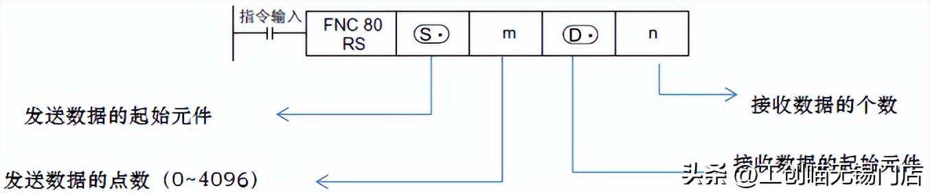 5.1.2RS串行指令图5-1RS指令格式格式M8161∶数据处理位数标志寄存器M8161=ON处理低8位数据M8161=OFF处理16位数据M8161为RS、ASCI、HEX、CCD指令共用,处理数......