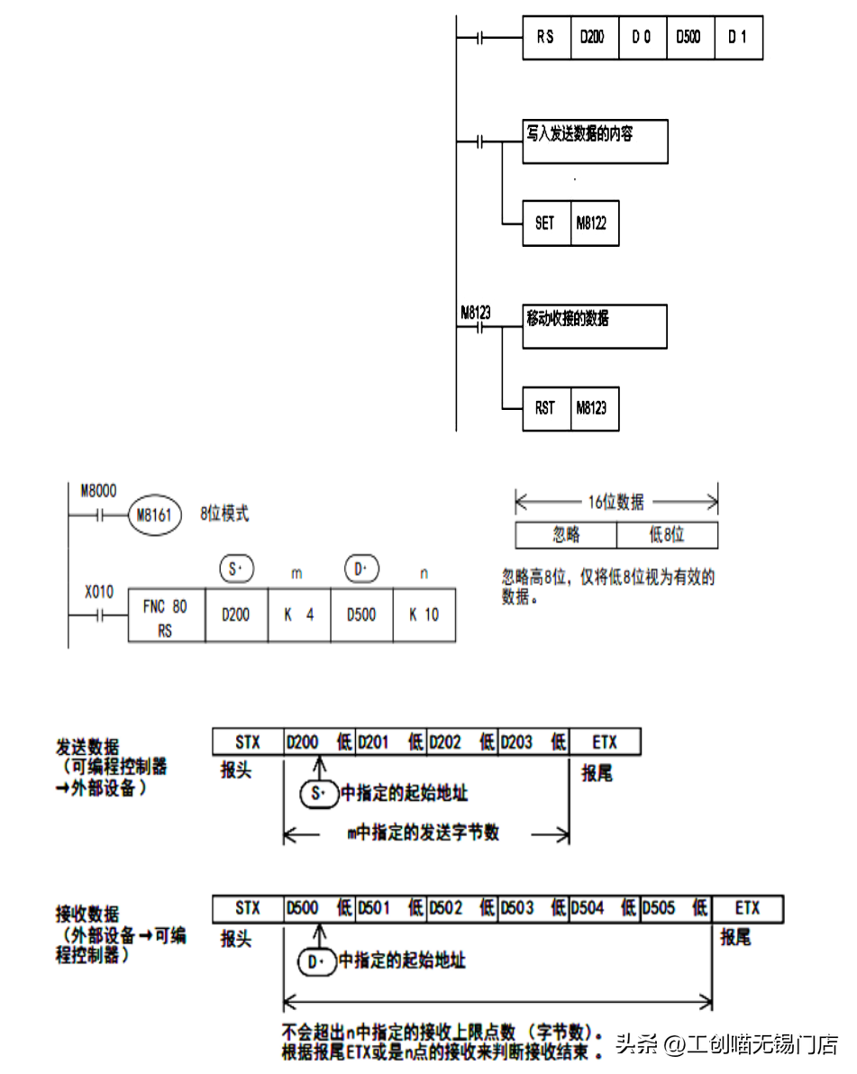 M8161为RS、ASCI、HEX、CCD指令共用,处理数据时有处理低8位、16位数据的两种模式,例如ASCI传送8位数据,M8161须置位。