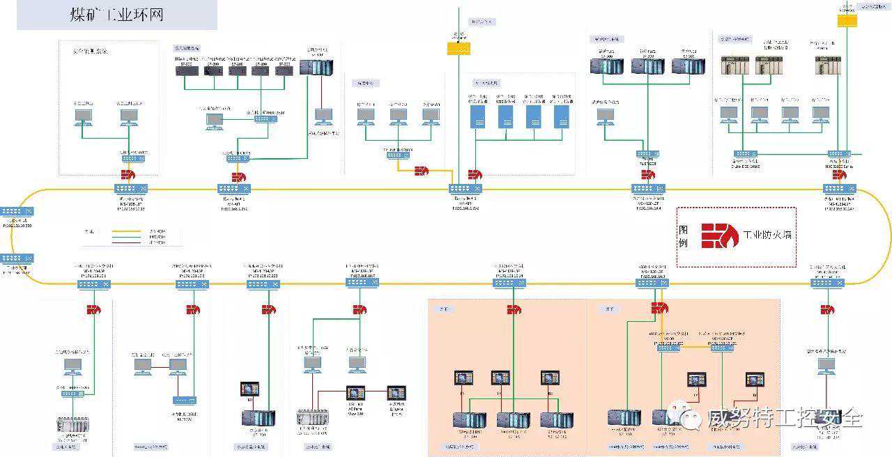 依据煤矿综合动化工业环网的实际情况,对安全防护体系架构进行如下规范: