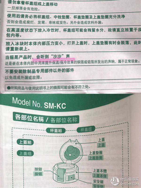 Q:问下楼主啊,双11买了个象印SM-KB48,杯子上下晃动的时候怎么感觉真空层有东西,就像那种沙子摩擦的感觉,同时买的膳魔师晃动起来就没一点声音呢?谢谢解答。(from@列单勿抢)