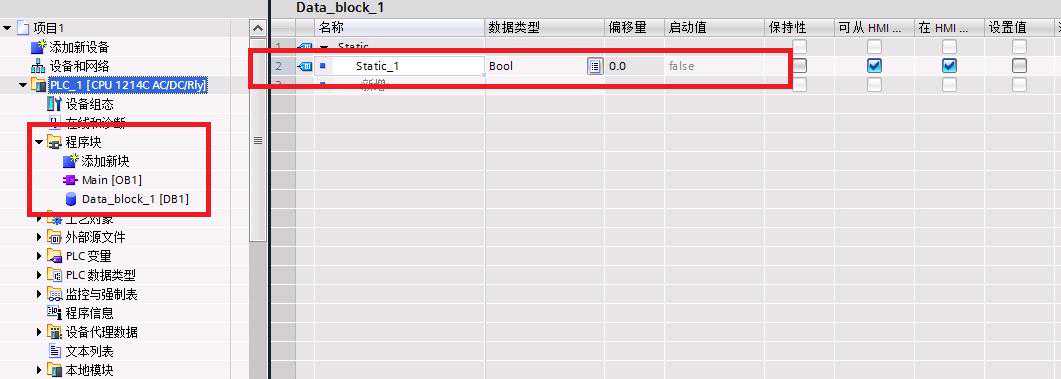 打开项目中"程序块",创建DB块,创建数据,如图2.所示。