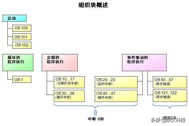 此次主要给大伙分享的干货是关于西门子PLC中各个组织块OB的作用,从OB1-122都做了详细的讲解,可以查收学习一下!1、自由循环组织块OB1CPU启动完成后,操作系统循环执行OB1,OB1执行完成后......