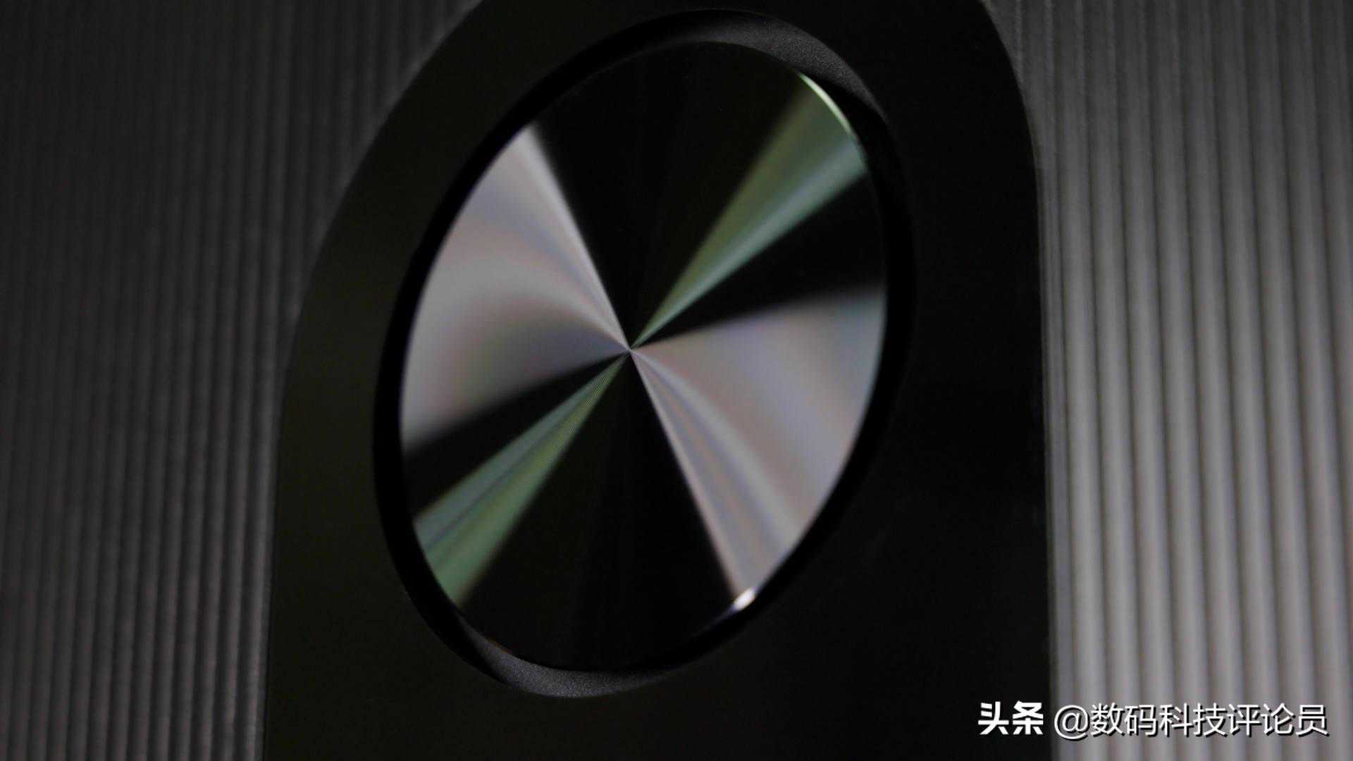 背板看过去也是整洁干净,平整的背面没有多余的点缀。而在电视背部靠上位置的的两侧,各配置了一枚扬声器,背部支架上还配有一枚独立低音大音腔,这样的设计自带立体声。