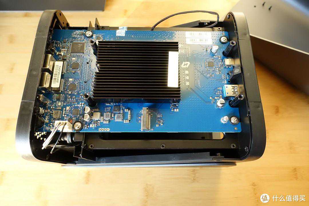 同时在这里还可以看到一个2280规格的固态硬盘安装位,如果有需要的话,我们可以找一块NVME硬盘插上,作为NAS的读取缓存使用。