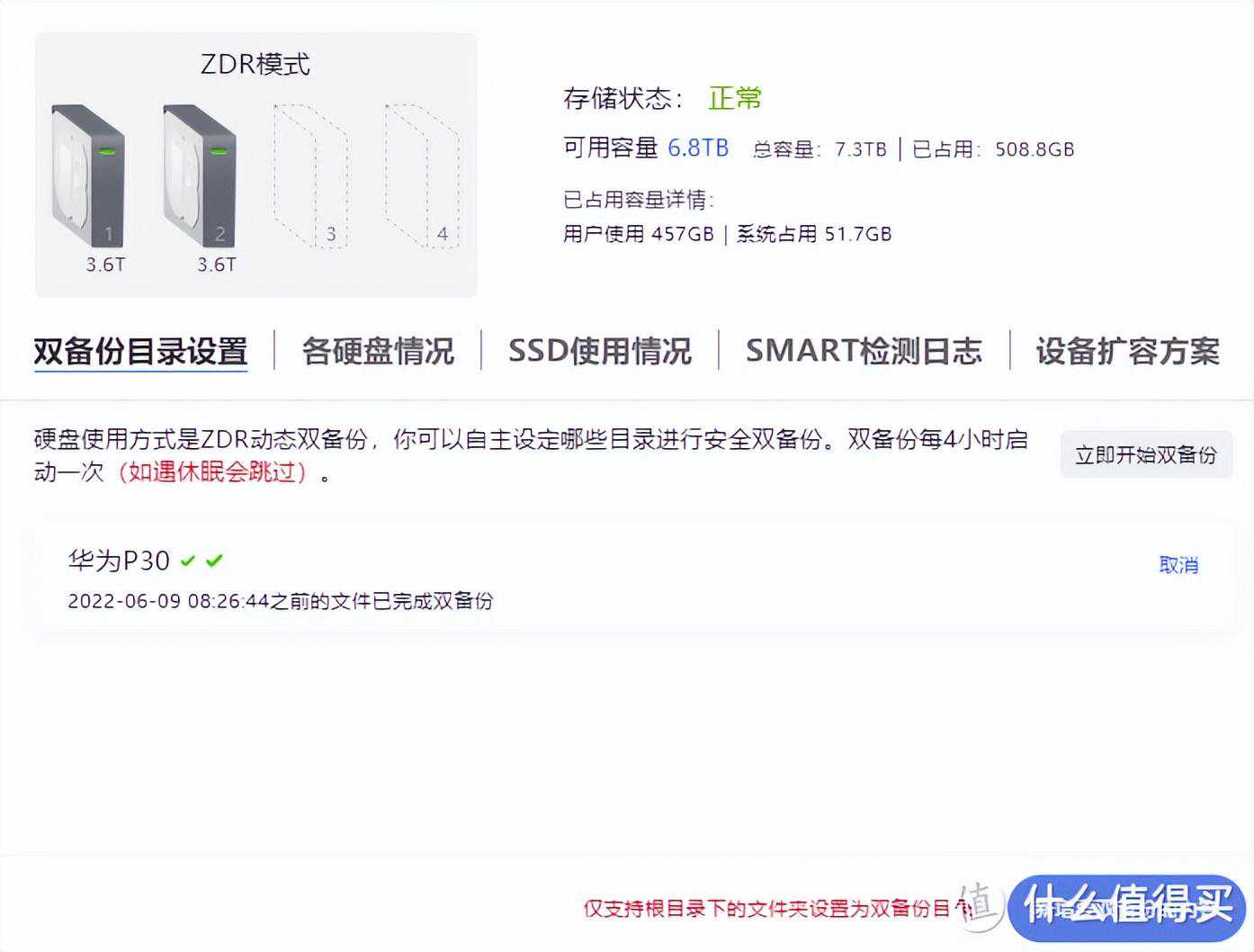 针对这种情况,极空间开发了目前独家使用的ZDR模式,可以有的放矢将需要保护的文件夹进行安全双备份,既保证了重要数据的安全性,又节约了硬盘空间,个人感觉这个思路真的不错。