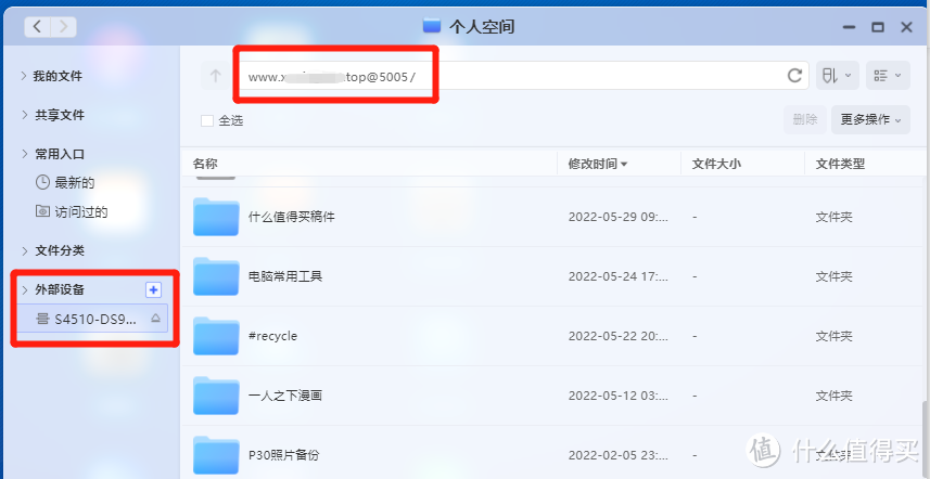 这里我通过WebDav协议,使用ipv6DDNS域名+端口号的方式,将另一套房子里的黑群晖文件夹给挂载了过来,管理和查看就跟本地文件夹一样方便。