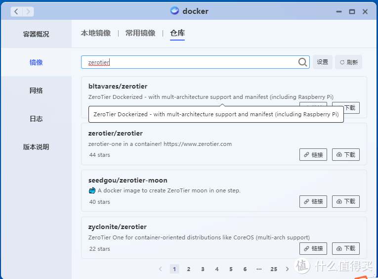 对于其他镜像,也能在仓库中通过搜索功能实现下载与调用: